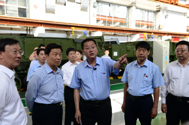 圖為李源潮(左二)在一機集團調(diào)研。 9月3日下午,中共中央政治局委員、國家副主席李源潮在內(nèi)蒙古自治區(qū)黨委副書記、政法委書記李佳,包頭市委副書記、代市長趙江濤等陪同下到中國兵器工業(yè)集團內(nèi)蒙古第一機械集團有限公司調(diào)研。 調(diào)研過程中,一機集團董事長、黨委書記白曉光向李源潮詳細介紹了一機集團60多年來的發(fā)展歷程、獲得的主要榮譽和軍民品結(jié)構(gòu)等方面情況以及信息化管理和智能制造在總裝生產(chǎn)線上的應用情況。李源潮邊聽介紹邊不時地插話詢問,了解企業(yè)的人員總量、各種產(chǎn)品技術(shù)性能特點、生產(chǎn)管理水平等情況。當了解到一機集團作為我國唯一的主戰(zhàn)坦克和8×8輪式戰(zhàn)車研制生產(chǎn)基地,并為我國裝甲裝備的建設做出了重要貢獻后,連聲說:“你們一機了不起,很了不起?!?/p> 來到國家級技能大師工作室駐軍品總裝工作站,李源潮與技能大師盧仁峰和張學海親切握手交談。當?shù)弥髧そ潮R仁峰在克服自身殘疾的情況下不僅練就了精湛的焊接技藝,而且還為公司培養(yǎng)了許多年輕的焊接技術(shù)人才時,高興地握著盧仁峰的手說:“好啊,你很不容易啊,大家都要向你學習?!崩钤闯边€親切地詢問了工作站每一位青年職工的學習、工作、生活情況??吹竭@些青年職工飽滿的精神狀態(tài)時,李源潮動情地說:“勞動者最光榮,你們是第一線的勞動者,是真正為國家做出貢獻和創(chuàng)造價值的。你們年輕人一定要把大國工匠和勞動模范的班接好,為企業(yè)、為國家多做貢獻?!?/p> “你們公司現(xiàn)在有多少名團員青年,平時團組織都有什么活動?”在五分公司503車間團支部建設園地前,李源潮仔細詢問了解一機集團的共青團工作開展情況。他還非常認真地從公司團干部手機中仔細了解了一機集團團委落實團中央“1+100”團干部聯(lián)系青年制度的開展情況,勉勵團干部改進作風,更好地直接聯(lián)系服務青年。 在總裝生產(chǎn)線,李源潮興致勃勃地登上公司最新研制生產(chǎn)的99A坦克,向白曉光詳細詢問了坦克自動裝彈系統(tǒng)、防護性能、火炮威力等各項戰(zhàn)技指標情況。 在五分公司觀禮臺前,三輛不同型號鐵甲戰(zhàn)車轟鳴著駛過,李源潮高興地不停鼓掌。隨后,李源潮還認真了解了現(xiàn)場擺放的各種型號的裝甲戰(zhàn)車的有關(guān)情況。 調(diào)研結(jié)束時,李源潮握著白曉光的手說,“謝謝一機集團的干部職工為我國國防事業(yè)做出的重要貢獻,請代我向全體干部職工問好”。(朱小萌)