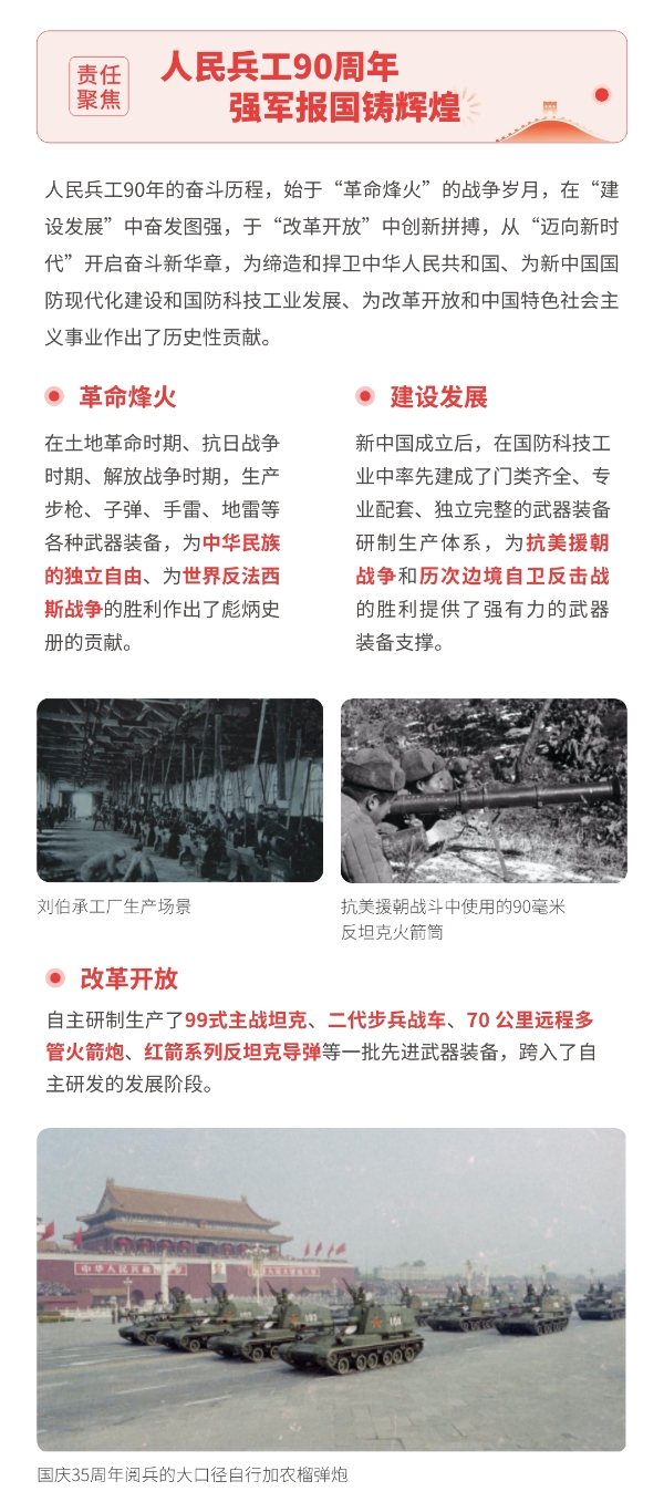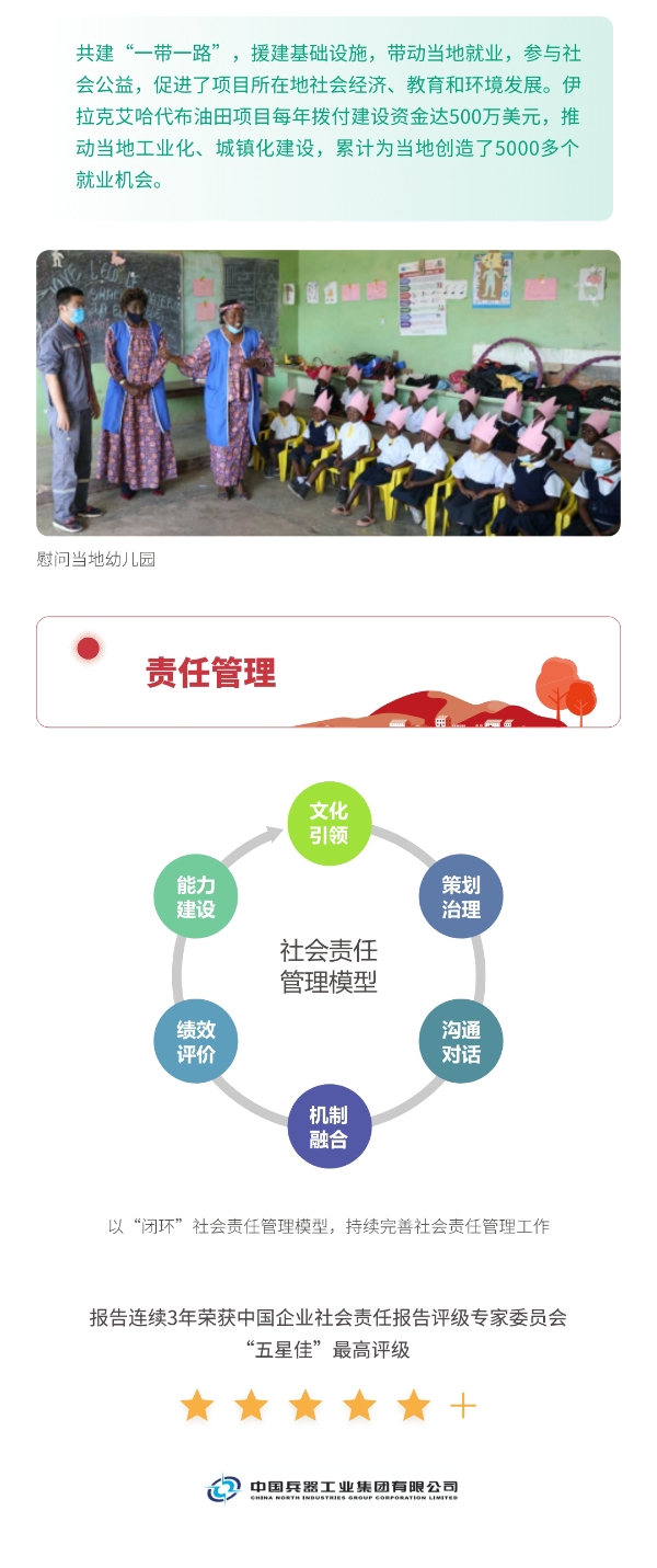 近日,兵器工業(yè)集團(tuán)正式發(fā)布第十三份年度社會責(zé)任報(bào)告——《中國兵器工業(yè)集團(tuán)有限公司2021年社會責(zé)任報(bào)告》,以“用心守護(hù)和平、用力爭創(chuàng)一流、用情溫暖社會”為主題,從恪守強(qiáng)軍首責(zé)、服務(wù)經(jīng)濟(jì)建設(shè)、共創(chuàng)美好生活三個(gè)維度,向社會全面披露2021年度履責(zé)實(shí)踐和履責(zé)業(yè)績?!秷?bào)告》連續(xù)第三年獲得中國企業(yè)社會責(zé)任報(bào)告評級專家委員會“五星佳”評級,兵器工業(yè)集團(tuán)成為軍工行業(yè)唯一連續(xù)11年獲得五星及五星佳最高評級的企業(yè)。 一圖解碼兵器工業(yè)的“責(zé)任力量” |