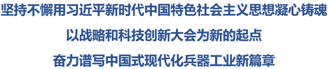 籌備已久、各方期待的中國兵器工業(yè)集團(tuán)有限公司戰(zhàn)略和科技創(chuàng)新大會就要召開了!這是集團(tuán)公司主題教育期間用習(xí)近平新時代中國特色社會主義思想武裝頭腦、指導(dǎo)實踐、推動工作,引領(lǐng)兵器工業(yè)未來發(fā)展的一次十分重要的大會,要以此次主題教育為契機(jī),加強黨的創(chuàng)新理論武裝,統(tǒng)一思想、統(tǒng)一意志、統(tǒng)一行動,凝聚起履行強軍首責(zé),推動高質(zhì)量發(fā)展,打造具有全球競爭力的世界一流集團(tuán)公司的強大力量!