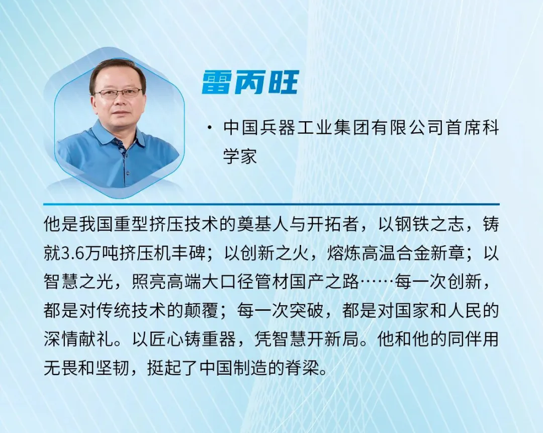 近日,《科學(xué)中國人》雜志社發(fā)布2024“年度科技人物”榜單,中國兵器首席科學(xué)家、北重集團雷丙旺當選“影響力科學(xué)家”。 雷丙旺是我國極端金屬擠壓技術(shù)的開拓者,扎根邊疆地區(qū)國防特大型企業(yè)工作38年,長期從事金屬成形制造裝備與工藝研究工作。他研制出我國極限制造的大國重器——3.6萬噸黑色金屬垂直擠壓機,一舉打破國外技術(shù)封鎖,填補國內(nèi)空白,實現(xiàn)了超(超)臨界電站核心管道和航空發(fā)動機高壓渦輪盤粉末合金棒材的中國制造,開發(fā)出成套關(guān)鍵技術(shù),取得一系列原創(chuàng)性成果,促進了產(chǎn)業(yè)的融合發(fā)展,創(chuàng)造巨大經(jīng)濟社會效益。