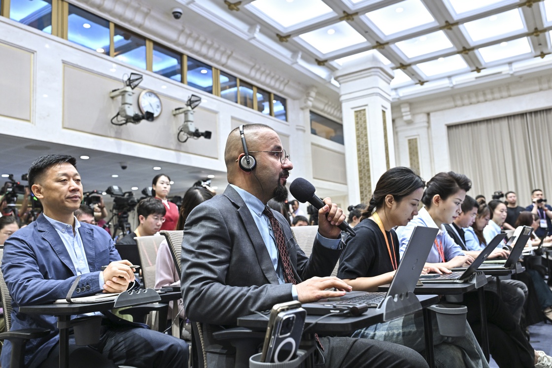 8月20日,國務院新聞辦公室在北京舉行新聞發(fā)布會,閱兵領導小組辦公室副主任、中央軍委聯(lián)合參謀部作戰(zhàn)局少將副局長吳澤棵,中國人民解放軍中部戰(zhàn)區(qū)閱兵指揮機構辦公室常務副主任、政治工作部少將副主任徐貴忠介紹閱兵準備工作有關情況,并答記者問。這是記者在現(xiàn)場提問。
